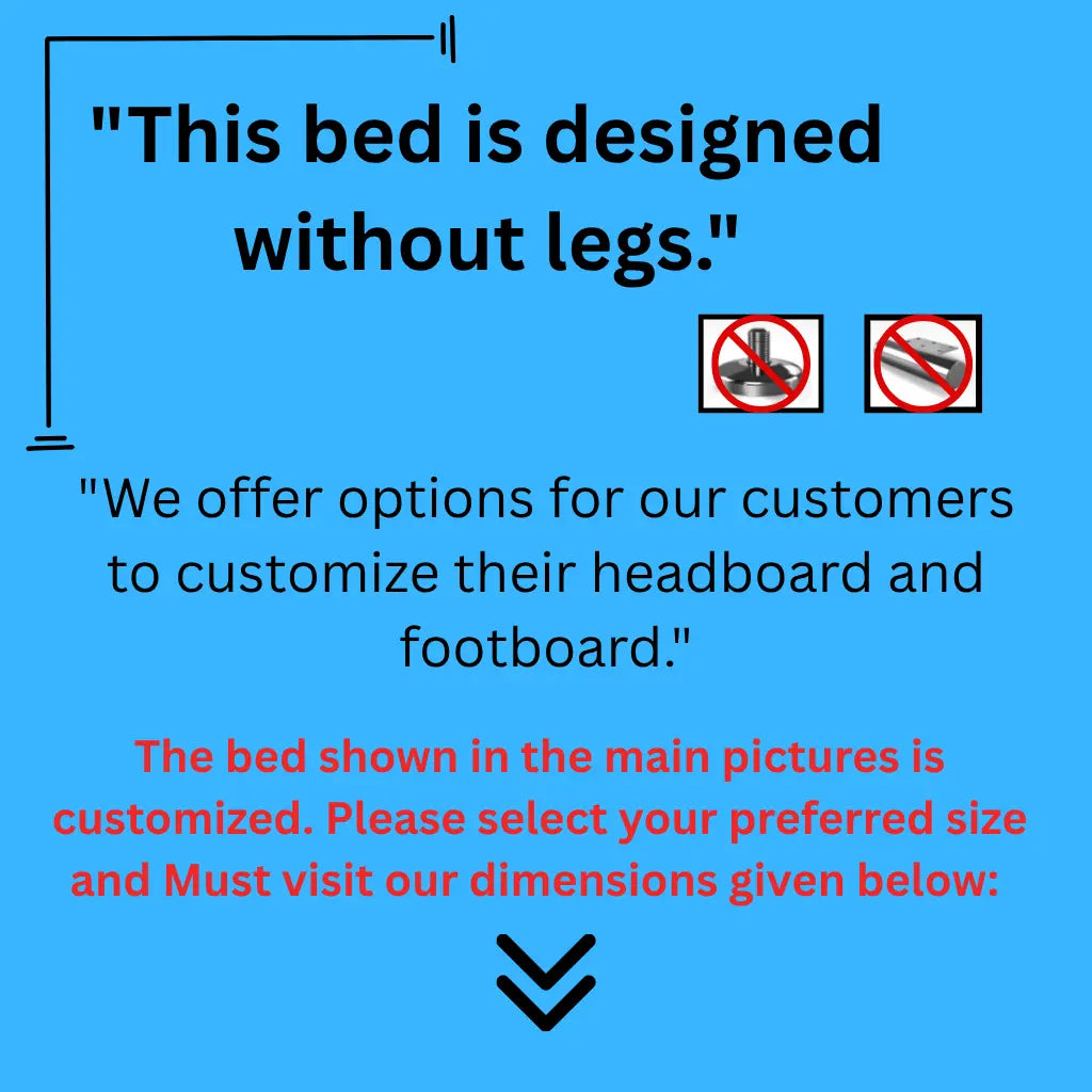 See our dimension sketch and tables below for all sizes, including headboard, footboard, and base heights.