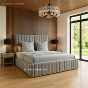 Elevate your bedroom into a haven of contemporary elegance and ingenious functionality with our sophisticated Grey Belgravia Multi Panel Ottoman Storage Bed Frame. This stunning bed is a testament to modern design, seamlessly blending striking aesthetics with smart storage solutions to create a truly organized and stylish sleep space. Upholstered in a luxurious, sumptuously soft grey plush fabric, the Belgravia bed offers a chic, inviting feel and a versatile elegance that effortlessly complements any interior decor style.