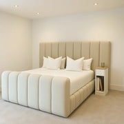 Elevate your bedroom into a haven of serene elegance and intelligent design with our exquisite Cream Tranquil Dawn Panel Bed. This luxurious bed frame is a testament to unique contemporary aesthetics, offering a distinctive panel design that beautifully frames your sleep space. Upholstered in a sumptuously soft cream plush fabric, the Tranquil Dawn bed provides a warm, inviting feel and a versatile elegance that effortlessly complements any interior decor style.